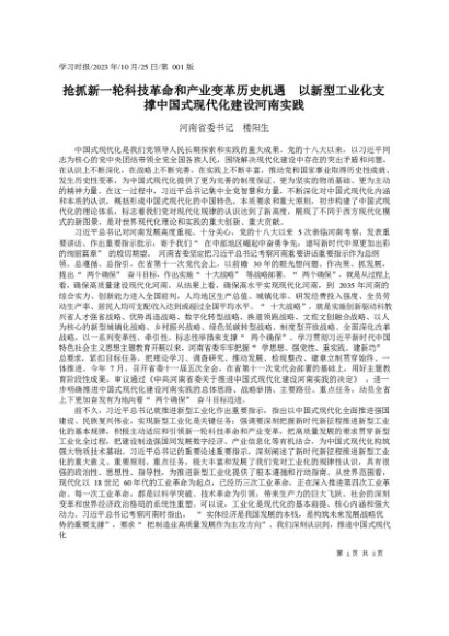 署名文章:2023.10.25河南省委书记楼阳生:抢抓新一轮科技革命和产业变革历史机遇以新型工业化支撑中国式现代化建设河南实践