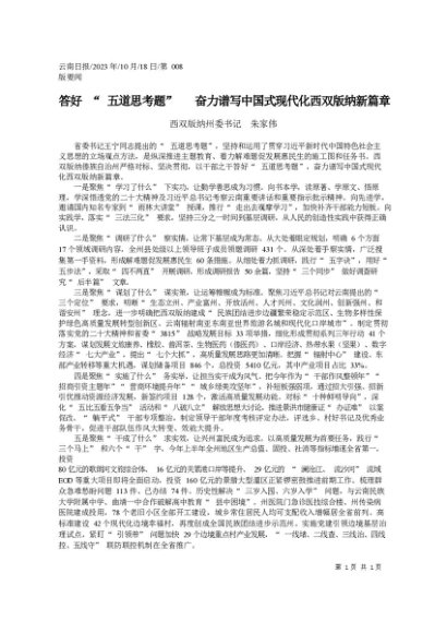 / 署名文章:2023.10.18西双版纳州委书记朱家伟:答好五道思考题奋力谱写中国式现代化西双版纳新篇章
