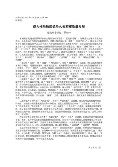 署名文章:2023.10.23迪庆州委书记罗朝峰:奋力推动迪庆长治久安和高质量发展