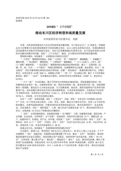 / 署名文章:2023.10.24中共昆明市东川区委书记龙刚:推动东川区经济转型和高质量发展