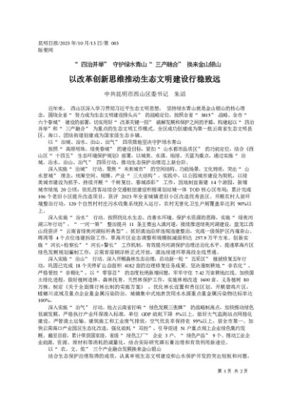 / 署名文章:2023.10.13中共昆明市西山区委书记朱滔:以改革创新思维推动生态文明建设行稳致远
