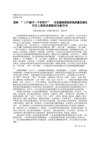 署名文章:2023.10.09昌都市委书记龚会才:坚持三个赋予一个有利于在创建高原经济高质量发展先行区上展现昌都新担当新作为
