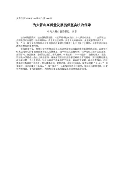 / 署名文章:2023.10.07中共大箐山县委书记安东:为大箐山高质量发展提供坚实法治保障