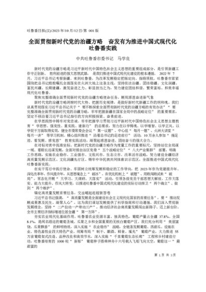 / 署名文章:2023.10.12中共吐鲁番市委书记马学良:全面贯彻新时代党的治疆方略奋发有为推进中国式现代化吐鲁番实践