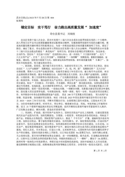 / 署名文章:2023.07.28奇台县委书记刘晓刚:锚定目标实干笃行奋力跑出高质量发展加速度