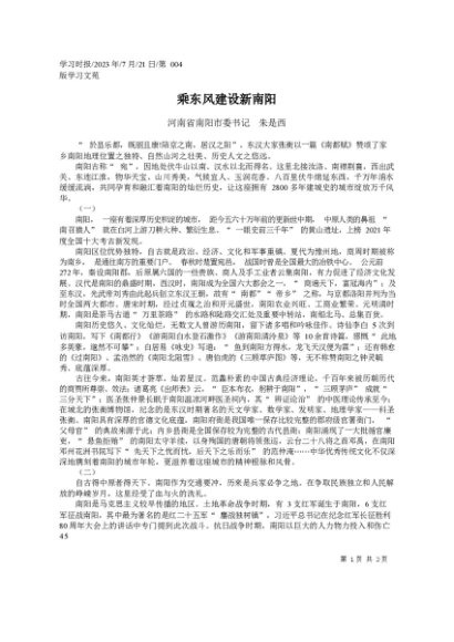 署名文章:2023.07.21河南省南阳市委书记朱是西:乘东风建设新南阳