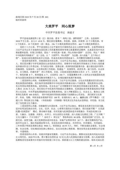 / 署名文章:2023.07.20中共罗平县委书记海建才:大美罗平同心筑梦