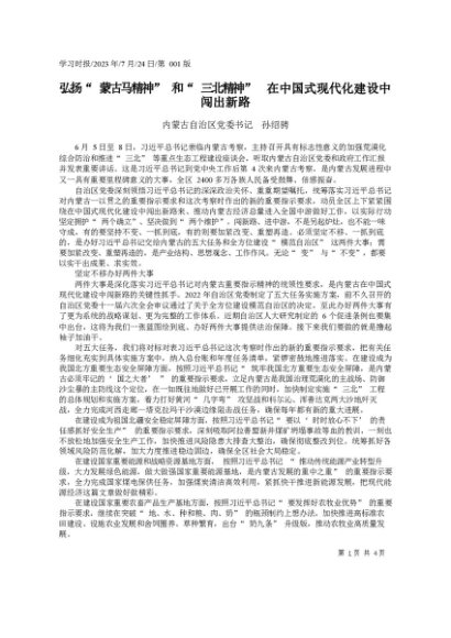 署名文章:2023.07.24内蒙古自治区党委书记孙绍骋:弘扬蒙古马精神和三北精神在中国式现代化建设中闯出新路