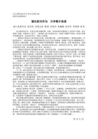 / 署名文章:2023.07.21湖口县委书记曾宝柱:强化担当作为只争朝夕奋进