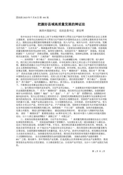 / 署名文章:2023.07.08湘西州委副书记花垣县委书记廖良辉:把握好县域高质量发展的辩证法