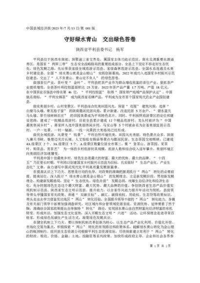 / 署名文章:2023.07.13陕西省平利县委书记杨军:守好绿水青山交出绿色答卷