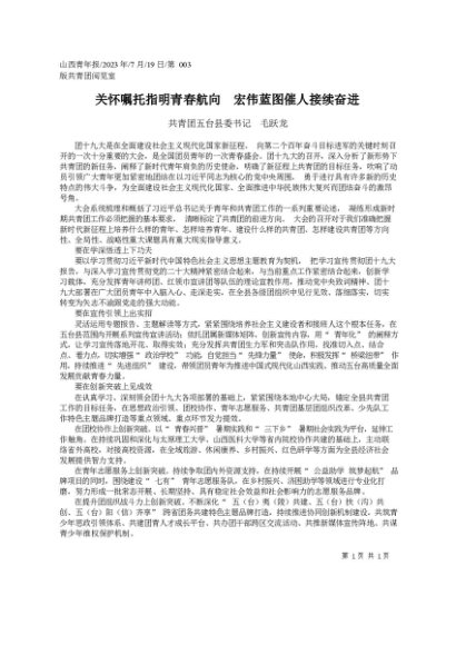 / 署名文章:2023.07.19共青团五台县委书记毛跃龙:关怀嘱托指明青春航向宏伟蓝图催人接续奋进