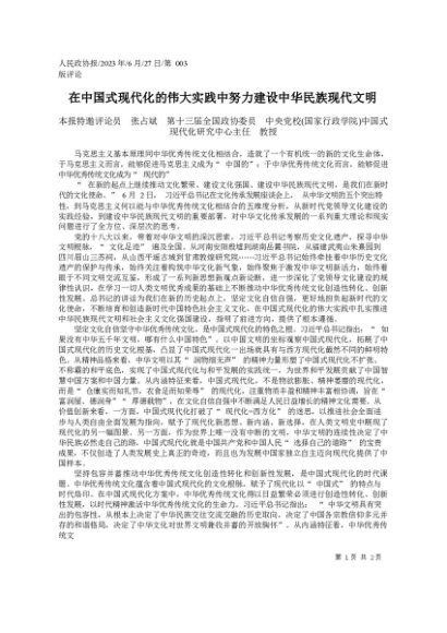 署名文章:2023.06.27本报特邀评论员张占斌第十三届全国政协委员中央党校(国家行政学院)中国式现代化研究中心主任教授:在中国式现代化的伟大实践中努力建设中华民族现代文明