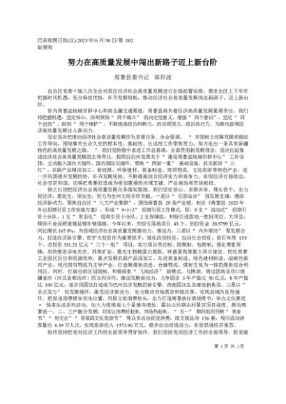 / 署名文章:2023.06.30焉耆县委书记陈轩波:努力在高质量发展中闯出新路子迈上新台阶