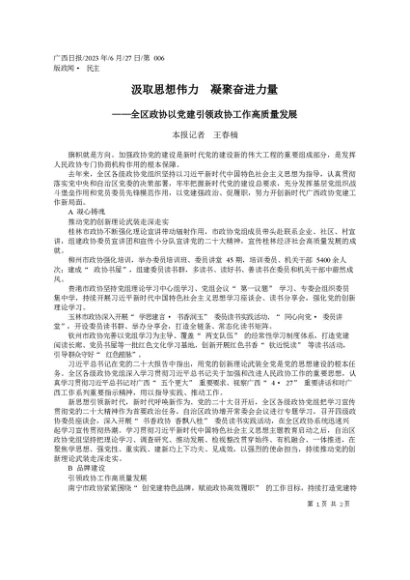 / 署名文章:2023.06.27本报记者王春楠:汲取思想伟力凝聚奋进力量