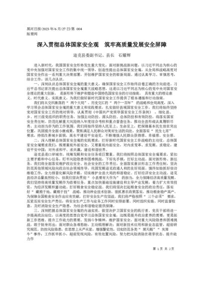 / 署名文章:2023.06.27逊克县委副书记、县长石耀辉:深入贯彻总体国家安全观筑牢高质量发展安全屏障