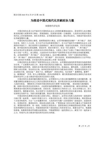 / 署名文章:2023.06.27本报特约评论员:为推进中国式现代化贡献政协力量