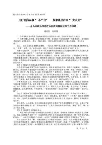 / 署名文章:2023.06.21通讯员刘绍周:用好协商议事小平台凝聚基层治理大合力