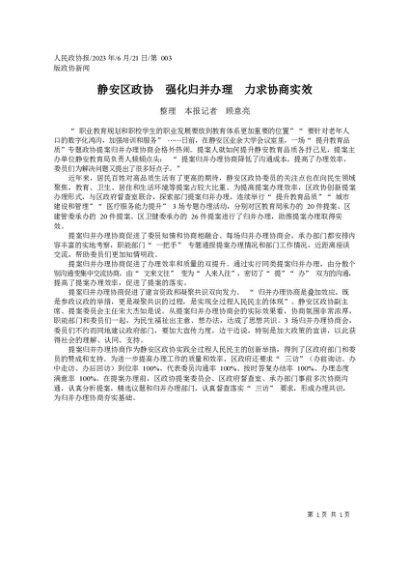 署名文章:2023.06.21整理本报记者顾意亮:静安区政协强化归并办理力求协商实效
