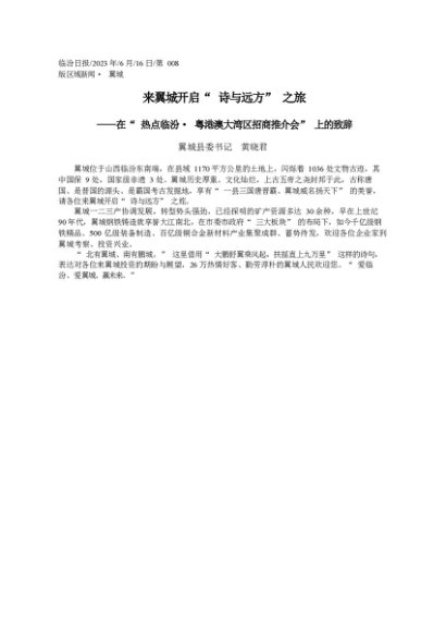 署名文章:2023.06.16翼城县委书记黄晓君:来翼城开启诗与远方之旅
