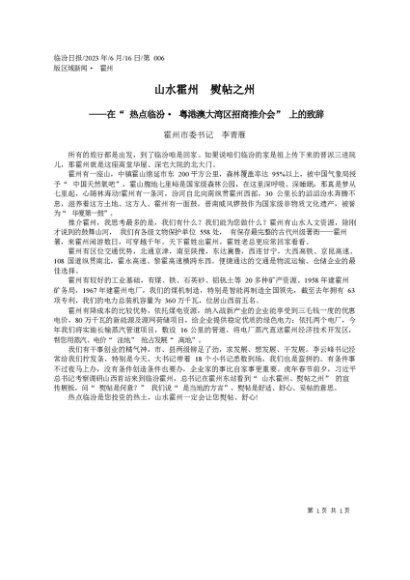 / 署名文章:2023.06.16霍州市委书记李青雁:山水霍州熨帖之州