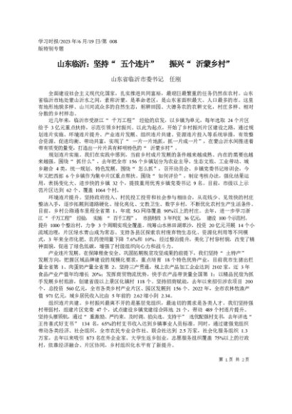 署名文章:2023.06.19山东省临沂市委书记任刚:山东临沂:坚持五个连片振兴沂蒙乡村