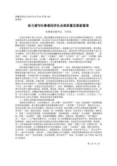 署名文章:2023.06.16吐鲁番市委书记马学良:奋力谱写吐鲁番经济社会高质量发展新篇章