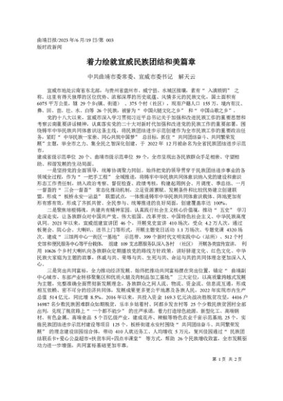 / 署名文章:2023.06.19中共曲靖市委常委、宣威市委书记解天云:着力绘就宣威民族团结和美篇章
