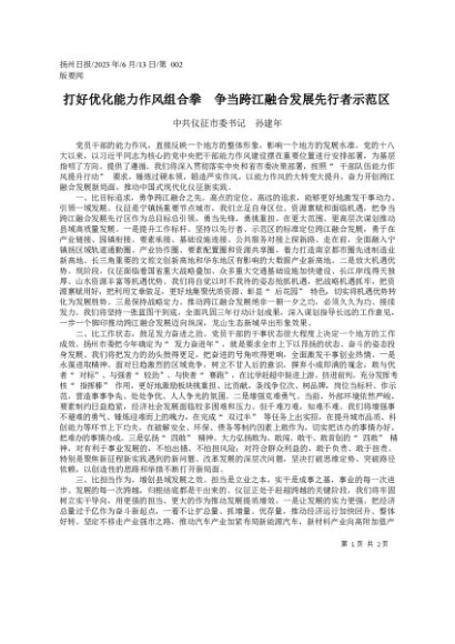署名文章:2023.06.13中共仪征市委书记孙建年:打好优化能力作风组合拳争当跨江融合发展先行者示范区