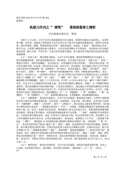 / 署名文章:2023.06.09中共高邮市委书记张利:执能力作风之硬笔著高邮篇章之精彩