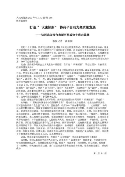 / 署名文章:2023.06.12本报记者高新国:打造议谏倾新协商平台助力高质量发展