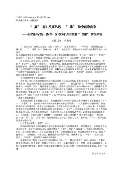 署名文章:2023.06.08本报记者巩雅菲:廉存心头腐已远律挂身前净自来