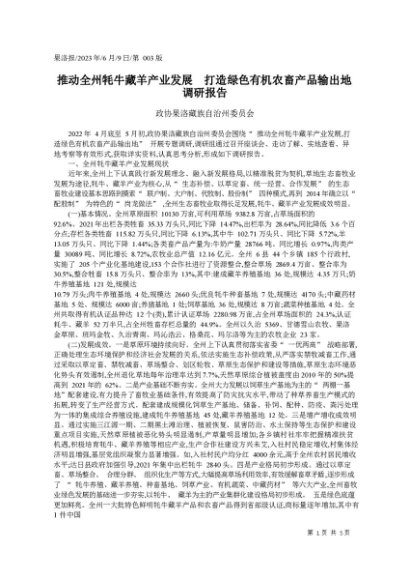 署名文章:2023.06.09政协果洛藏族自治州委员会:推动全州牦牛藏羊产业发展打造绿色有机农畜产品输出地调研报告