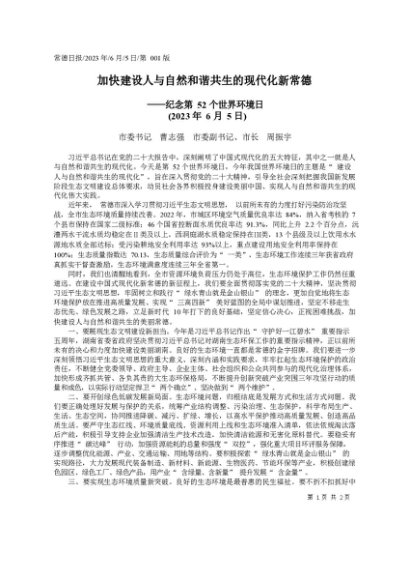 / 署名文章:2023.06.05市委书记曹志强市委副书记、市长周振宇:加快建设人与自然和谐共生的现代化新常德