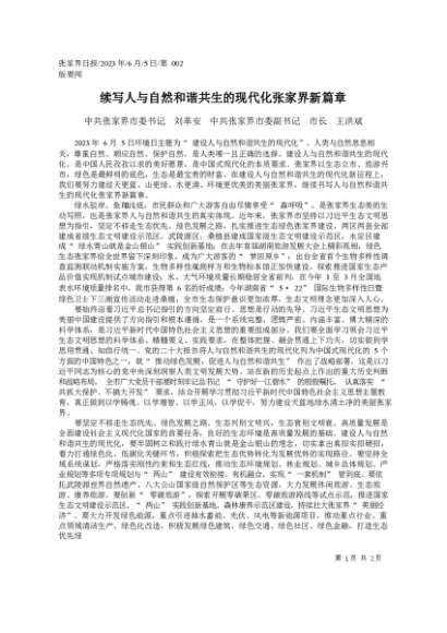 署名文章:2023.06.05中共张家界市委书记刘革安中共张家界市委副书记市长王洪斌:续写人与自然和谐共生的现代化张家界新篇章