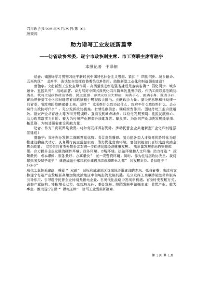 署名文章:2023.05.25本报记者于泽钿:助力谱写工业发展新篇章