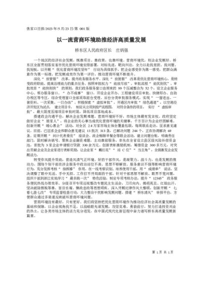 / 署名文章:2023.05.23桥东区人民政府区长庄炳强:以一流营商环境助推经济高质量发展