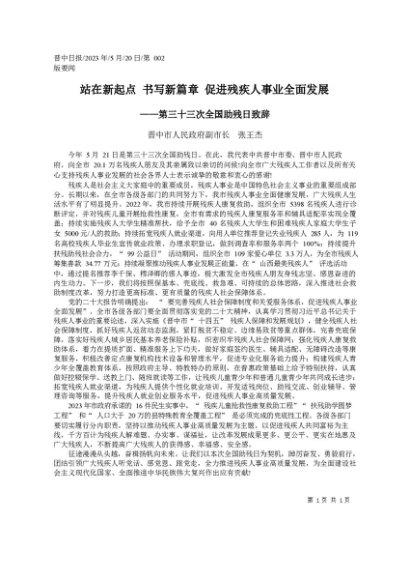 署名文章:2023.05.20晋中市人民政府副市长张王杰:站在新起点书写新篇章促进残疾人事业全面发展