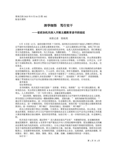 署名文章:2023.05.16本报记者张晓英:深学细悟笃行实干