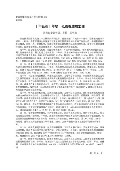 署名文章:2023.05.09海东市委副书记、市长王华杰:十年征程十年歌砥砺奋进展宏图