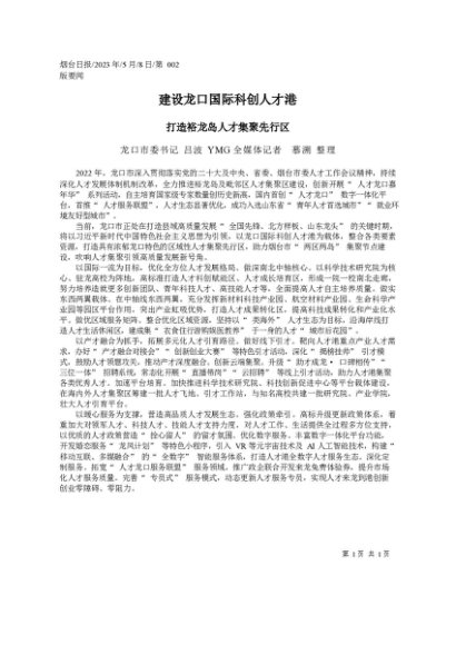 / 署名文章:2023.05.08龙口市委书记吕波YMG全媒体记者慕溯整理:建设龙口国际科创人才港