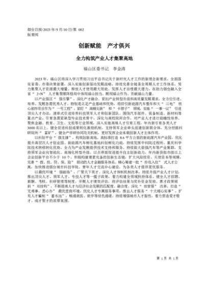 / 署名文章:2023.05.10福山区委书记李金涛:创新赋能产才俱兴
