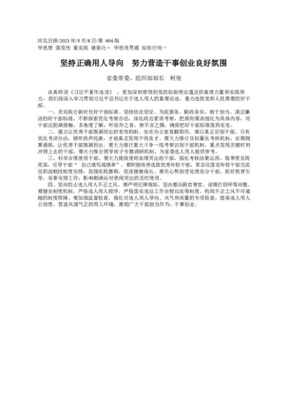 / 署名文章:2023.05.08省委常委、组织部部长柯俊:坚持正确用人导向努力营造干事创业良好氛围