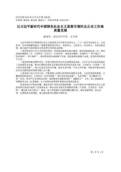/ 署名文章:2023.05.08副省长、省公安厅厅长王立彤:以习近平新时代中国特色社会主义思想引领河北公安工作高质量发展