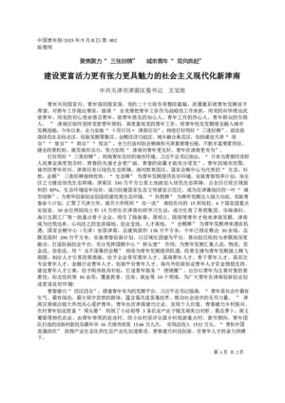 署名文章:2023.05.08中共天津市津南区委书记王宝雨:建设更富活力更有张力更具魅力的社会主义现代化新津南