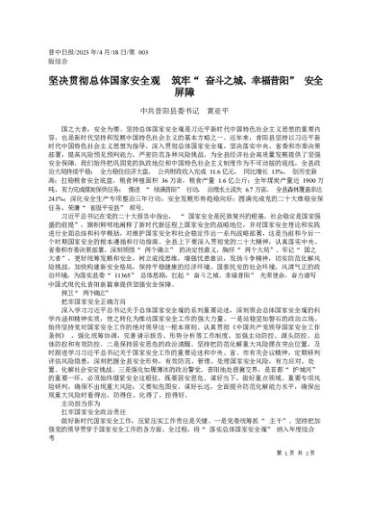 / 署名文章:2023.04.18中共昔阳县委书记黄亚平:坚决贯彻总体国家安全观筑牢奋斗之城、幸福昔阳安全屏障