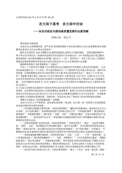/ 署名文章:2023.04.19本报记者宋沁飞:在大局下思考在大局中行动