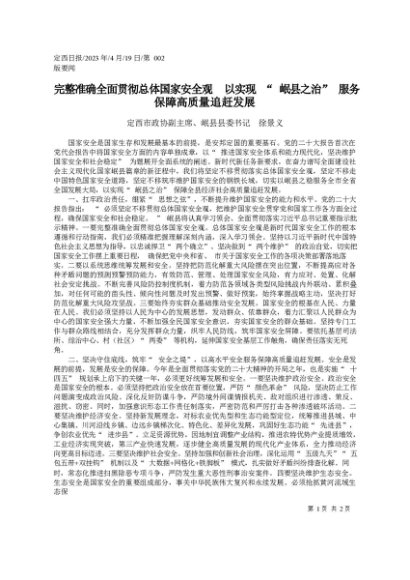 署名文章:2023.04.19定西市政协副主席、岷县县委书记徐景义:完整准确全面贯彻总体国家安全观以实现岷县之治服务保障高质量追赶发展