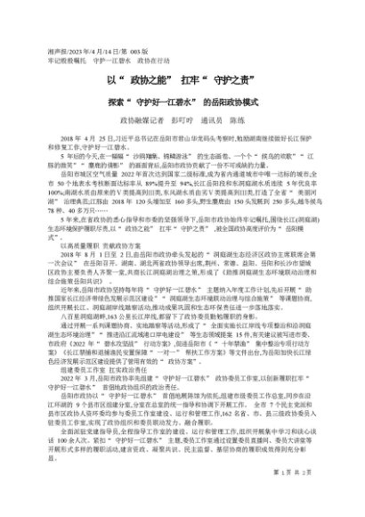 署名文章:2023.04.14政协融媒记者彭叮咛通讯员陈练:以政协之能扛牢守护之责