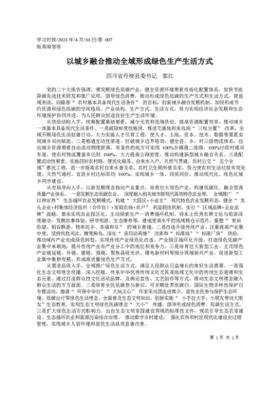 / 署名文章:2023.04.10四川省丹棱县委书记郭红:以城乡融合推动全域形成绿色生产生活方式